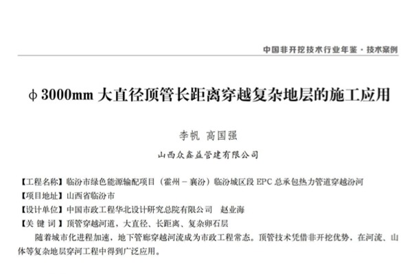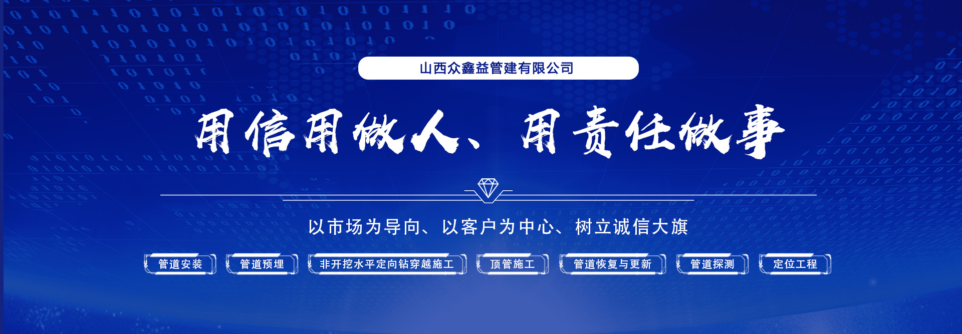 山西眾鑫益管建有限公司成立于2013年8月,注冊資金5000萬元人民幣。是一家主要致力于管道安裝、管道預(yù)埋,非開挖水平定向鉆進(jìn)穿越施工,管道修復(fù)與更新、管道探測、管道定位,建筑工程機(jī)械與設(shè)備租賃的企業(yè)。